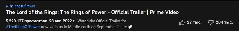 Однако фанатов вселенной Толкиена трейлер сериала, похоже, совсем не впечатлил. На момент публикации заметки видео имеет 27 тыс. лайков и 204 тыс. дизлайков. Так что, возможно, нас ждет один из самых крупных ТВ-фейлов последних лет. Премьера сериала состоится уже 2 сентября.