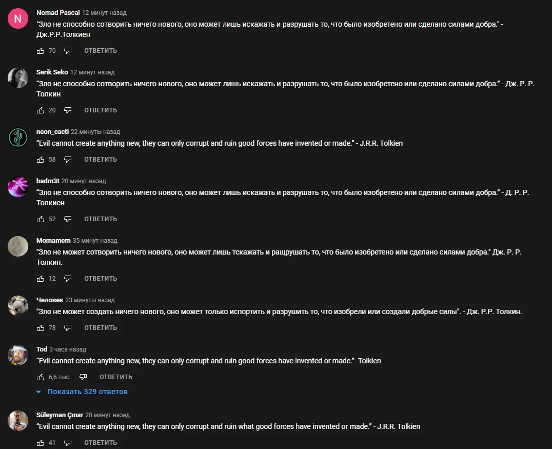 Похоже, что фанаты Толкиеновской вселенной оказались не слишком довольны увиденным. Почти все комментарии к трейлеру – это знаменитая цитата писателя о добре и зле: