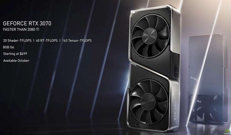 По словам NVIDIA, RTX 3070 немного мощнее флагманской модели предыдущего поколения RTX 2080 Ti, и стоит при этом в два раза дешевле. Она поступит в продажу в октябре по цене 45 500 рублей, что соответствует стоимости RTX 2070.