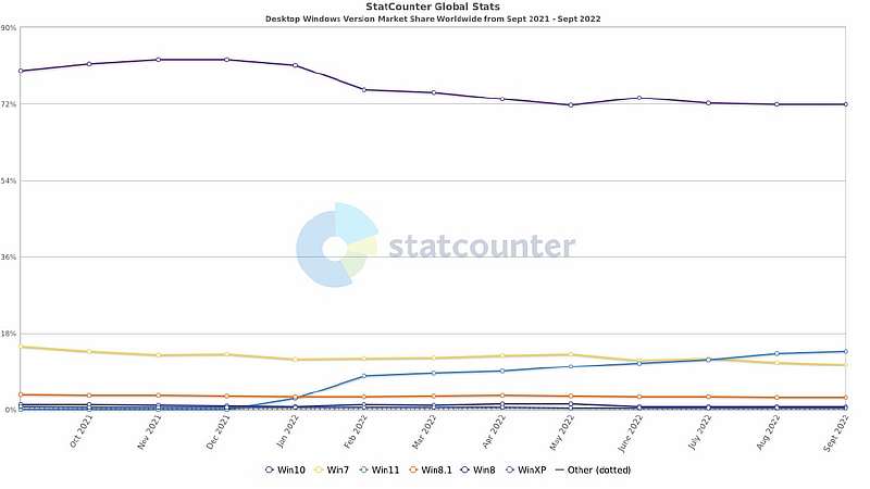 Несмотря на активное продвижение новой операционной системы Windows 11, обновляться до нее большинство пользователей не спешит. Об этом говорят данные ежемесячного отчета компании Statcounter, по которым наглядно видно, что люди предпочитают новинке прошлую версию ОС.