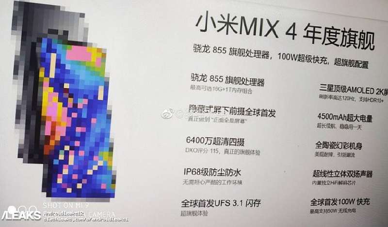Xiaomi Mi Mix 4 получит 100-ваттную зарядку и лучшую камеру на рынке