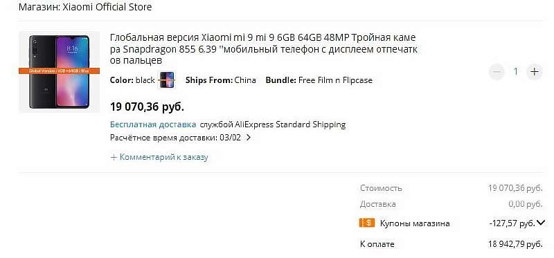 Пока отечественные ритейлеры продают Xiaomi Mi 9 за 29 990 рублей, в Китае флагман на Зимней распродаже Aliexpress можно взять за смешные 17 743 рубля. По такой скидке в официальном магазине Xiaomi доступна глобальная версия Mi 9 с 6/64 ГБ памяти. То есть вы получите аппарат с локализацией, работающим NFC и Google-сервисами из коробки – точно такой же, как продают в официальной рознице в России.