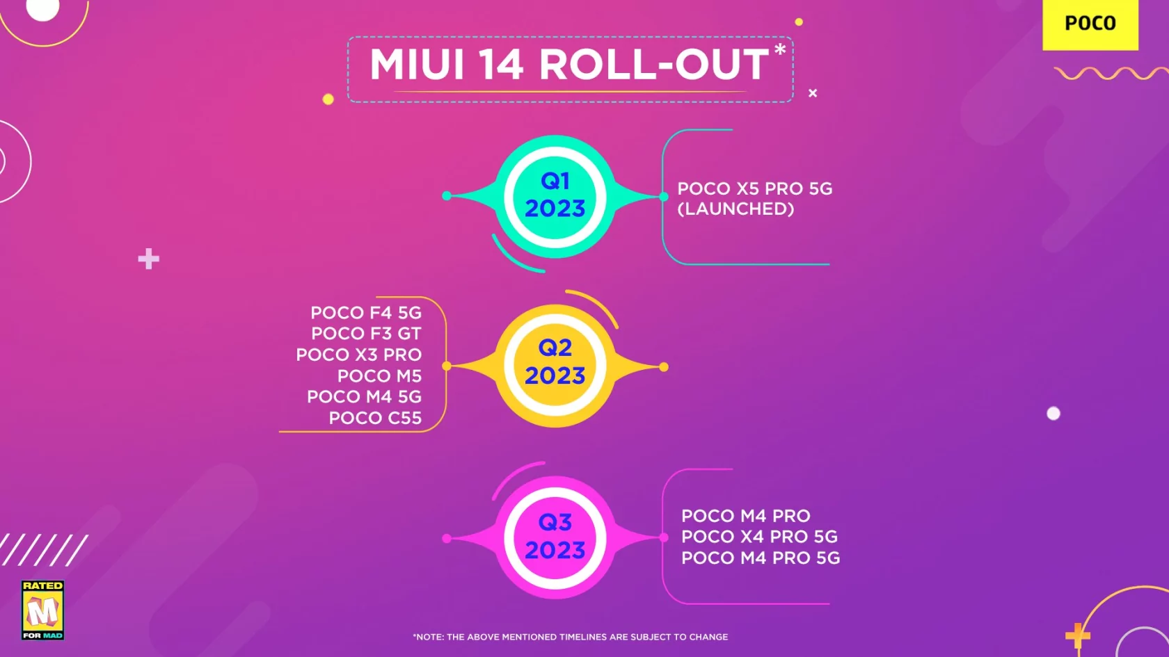 График обновлений смартфонов POCO до Android 13 и MIUI 14