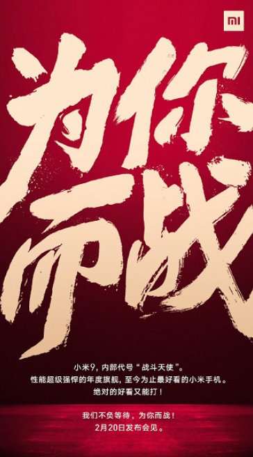 На страничке компании Xiaomi в соцсети Weibo появился тизер, раскрывающий дату анонса следующего флагмана бренда. На промо постере Xiaomi Mi 9 называют «боевым ангелом», что, как утверждает глава компании Лей Цзунь, описывает две ключевые особенности гаджета – премиальный дизайн и топовую производительность, а также олицетворяет борьбу Xiaomi за ценности потребителя, желающего видеть в смартфонах компании только лучшие технологии по достойной цене. Лей Цзунь заверил, что Xiaomi Mi9 будет чем удивить пользователей.