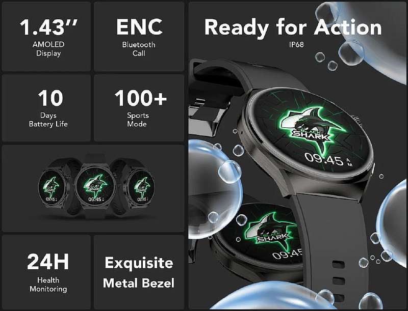 Что касается спорта, Black Shark S1 предлагают более 100 тренировочных режимов, а также встроенный GPS-модуль для точного отслеживания маршрутов. С телефоном устройство синхронизируется через Bluetooth 5.3 и фирменное приложение Shark Wear. Кроме того, в список функций входит: калькулятор, управление камерой и музыкой, секундомер, датчик SpO2, круглосуточный мониторинг пульса. Часами можно управлять с помощью вращающейся заводной головки, а автономности должно хватить примерно на 10 дней нормального использования.