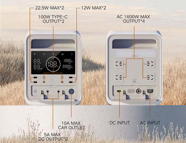 У новинки прямоугольный металлический корпус со скошенными краями, электронный дисплей на фронтальной стороне, а портов хватает, чтобы заряжать 13 различных устройств одновременно. Выходная мощность аккумулятора составила 1.6 кВт, но в пике она может доходить до 2.4 кВт, что позволяет питать крупную бытовую технику вроде холодильников и тепловых насосов.