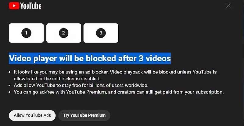 YouTube ограничил пользователей с блокировщиками рекламы. Максимум – три видео