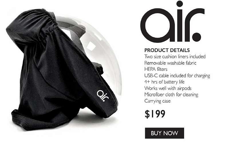 Новый продукт под названием MicroClimate Air уже вызвал немалый резонанс в сети. Это шлем с прозрачным остеклением спереди и моющейся тканью, которая прикрывает голову и шею сзади. Он имеет встроенный аккумулятор и мощную систему вентиляции, которая прогоняет воздух через фильтры в маске.