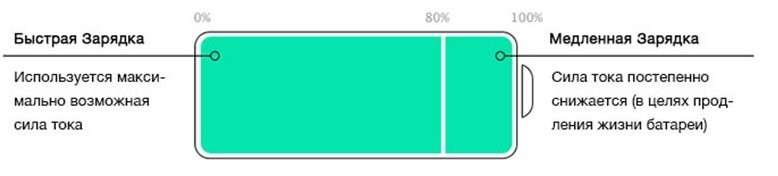 На сроке службы аккумулятора продолжительность зарядки тоже никак не сказывается, этот параметр зависит от зарядных циклов. Каждая батарея имеет ограниченное число зарядных циклов. В процессе эксплуатации она не перестает функционировать, но из-за выработки ресурса существенно потеряет в рабочем объеме и телефон начинает хуже держать заряд. Каждый такой цикл считается пройденным, если батарея телефона разряжена на 90% и больше. Для примера: вы пользовались смартфоном в течение дня и опустили батарею до 20%, затем зарядили до 80% и снова опустили до 70%, — в сумме 90% потраченного заряда, что равняется одному зарядному циклу.