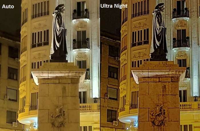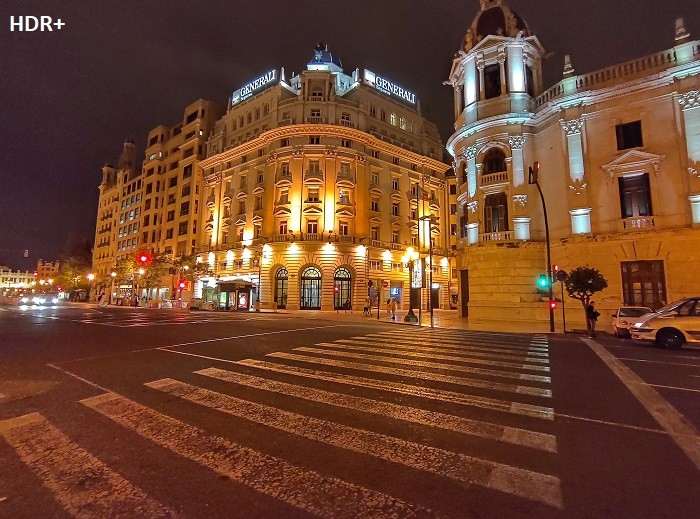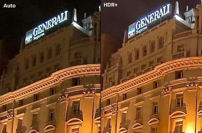 Вышеупомянутый ночной режим почему-то не работает на широкоугольном модуле, который имеет скромную светосилу f/2.4 и выдает соответствующие ей результаты. Принудительная активация HDR+ позволяет сделать картинку более светлой, но увеличивает количество цифрового шума.