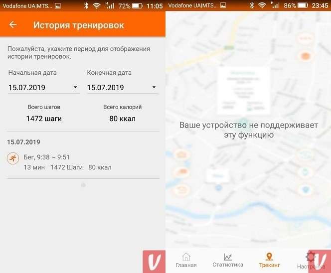 Попытка зайти во вкладку трекинг в приложении сопровождается неутешительной надписью, зато после завершения пробежки на экране браслета можно увидеть подбадривающее: «Превосходно, вы лучший!».