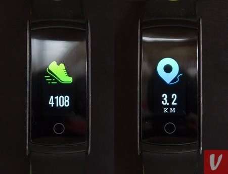 Пройдемся по меню браслета, которое состоит из 9 различных вкладок. За главным циферблатом следуют значки количества пройденных шагов и преодоленного за день расстояния. Шагомер в CNS-SB41 работает достаточно точно, я практически сутки носил его вместе с Ми Бэнд 4, и разница между браслетами была около 400 шагов, что не так уж и много с учетом их общего количества.