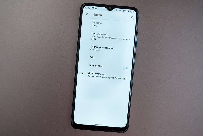 Но тут есть два момента. Во-первых, в настройках экрана нет инструментов для регулировки цветопередачи, даже баланс белого подстроить не получится. Доступен только ночной режим с настройкой интенсивности/времени работы, и темная тема.