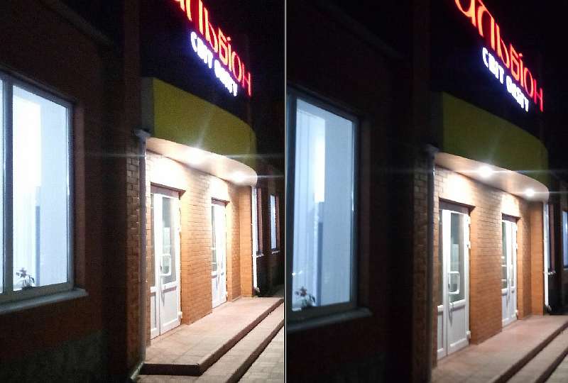Ночью камеру смартфона лучше не включать – ничего толкового снять не получится. Специальный режим ночной съемки не спасает, он просто завышает экспозицию, а не расширяет динамический диапазон, из-за чего светлые участки превращаются в пересвеченные пятна.
