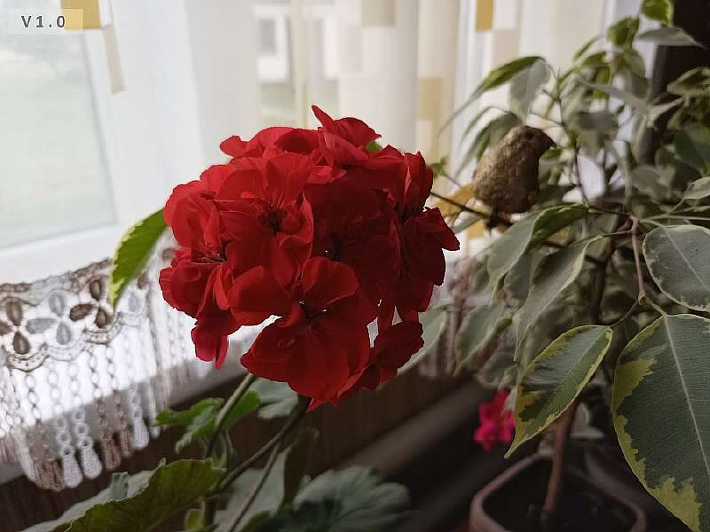 Вообще приложение камеры тут очень сырое: есть проблемы с переводом, всего пара режимов съемки (фото/видео/режим красоты/HDR/макро) и скудные настройки, где даже нельзя отключить ватемарку V1, которая остается на каждом снимке с основной камеры. Ночной режим съемки в смартфоне отсутствует, из-за чего при слабом освещении качество падает еще сильнее.