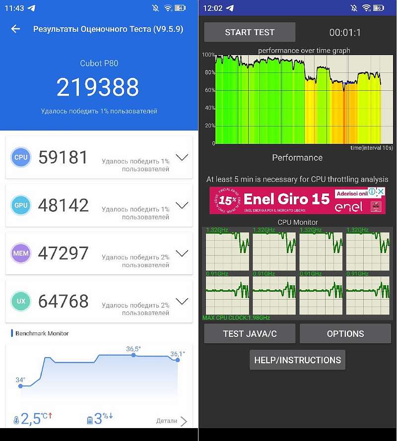 Проблем с приемом сотовой связи и LTE интернета у Cubot P80 нет, все как обычно. Разговорный микрофон адекватный, от собеседников не поступало жалоб на слышимость. Максимальная скорость по Wi-Fi тут довольно низкая, смарт выдает 40 Мб/сек там, где Pixel 6 разгоняется до 267, но скорость отправки у «кубота» даже чуть выше. В принципе, для комфортного использования интернета этого хватает.