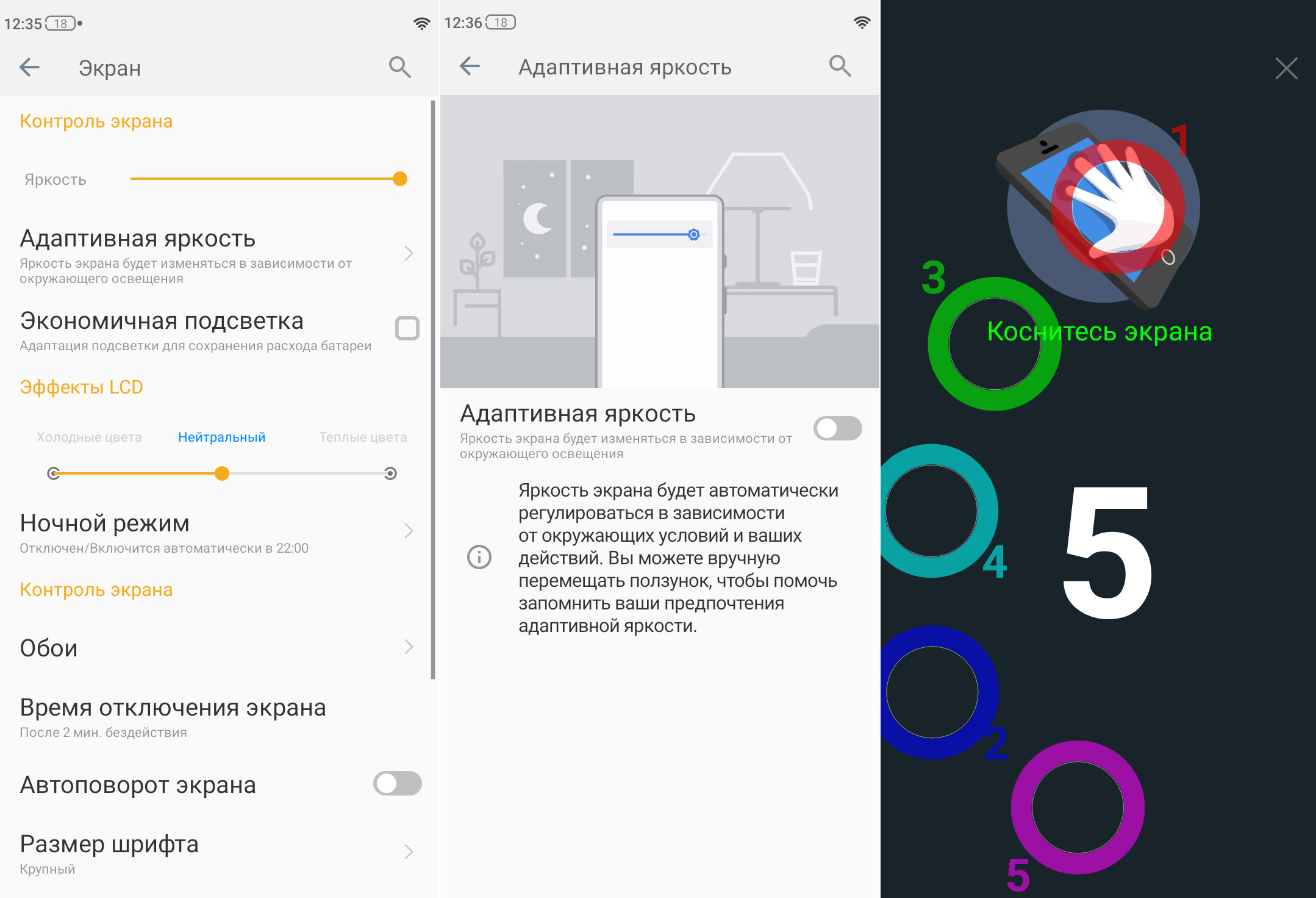 По цветопередаче дисплей B2021 не хуже IPS-матриц в сравнимых по цене бюджетных смартфонах от более известных брендов. Смотреть видео и скролить сайты приятно, а при желании можно подкорректировать под себя цветовую температуру или задать время работы ночного режима, интенсивность которого настраивается.