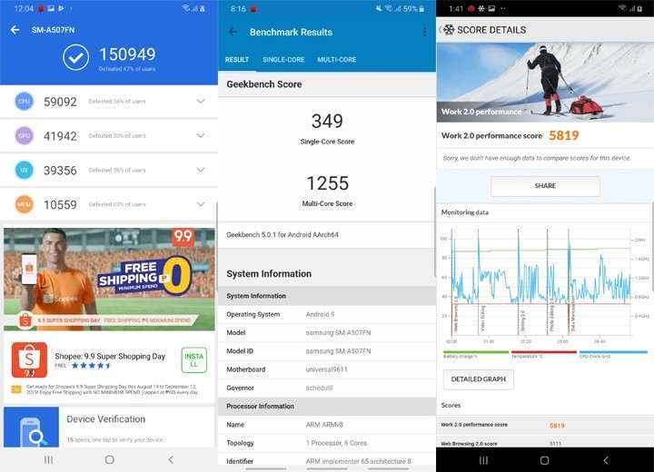 В плане производительности новинка не предлагает заметных улучшений относительно своего предшественника. Используемый процессор имеет аналогичный набор ядер и тактовую частоту, также не отличаются графический ускоритель и объем/тип оперативной памяти, а единственным отличием Exynos 9611 от 9610 является поддержка камер с более высоким разрешением. Зато смартфон прибавил в количестве постоянной памяти – теперь в базовой версии идет сразу 128 ГБ ПЗУ.