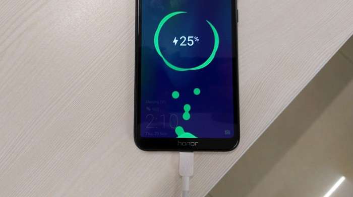 Honor 8C имеет увесистый подбородок с логотипом производителя и монобровь. Освободить больше полезного пространства дисплея можно скрыв наэкранные кнопки и используя систему управления жестами, также присутствует возможность замаскировать выступ под фронталку заливкой смежных зон (на черном фоне могут выводиться часы и значки уведомлений).