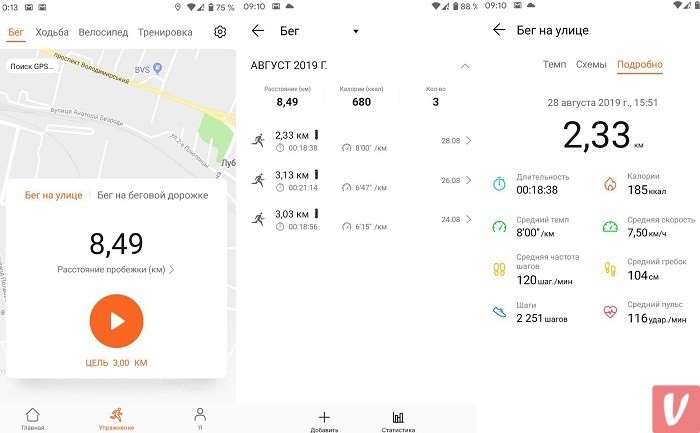 Как и все подобные гаджеты без встроенного GPS, точные результаты тренировок, такие как дистанция или темп бега, трекер показывает только при синхронизации со смартфоном с включенным GPS модулем.