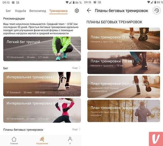 Благо реализация спортивного функционала в фирменном приложении весьма качественная. Имеются сценарии для различных типов занятий, планы подготовки к соревнованиям и достижения индивидуальных целей (похудание, выносливость). Занятия сопровождаются голосовыми подсказками «личного тренера», но вещает он только на английском языке.