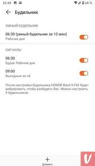 Единственное, чего не хватает, так это возможности включать будильник с браслета, делать это можно только в приложении. Ну и если вы спите слишком крепко, не факт что вибрации будет достаточно для пробуждения, тут она даже немного слабее чем на Mi Band 4.