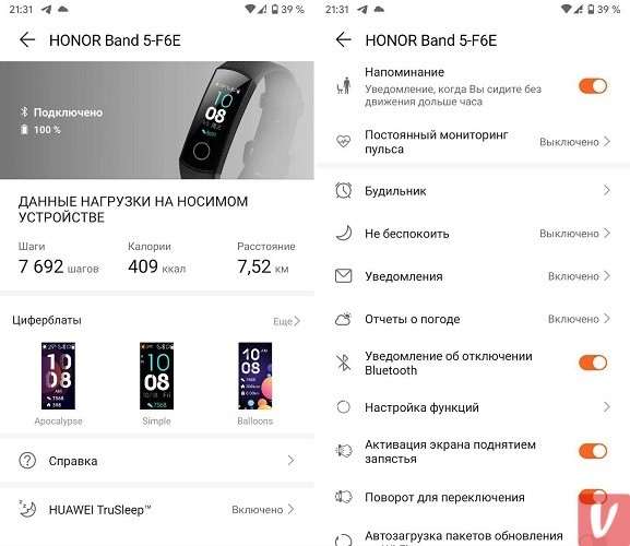 Версии Honor Band 5