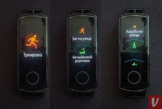 В браслете предусмотрено 9 тренировочных режимов, помимо стандартного бега и ходьбы, имеются такие сценарии как плавание, велосипед, элипсоид и даже гребной тренажер. Не обошлось и без нелепых косяков интерфейса – название некоторых режимов на русском почему-то не отображается.