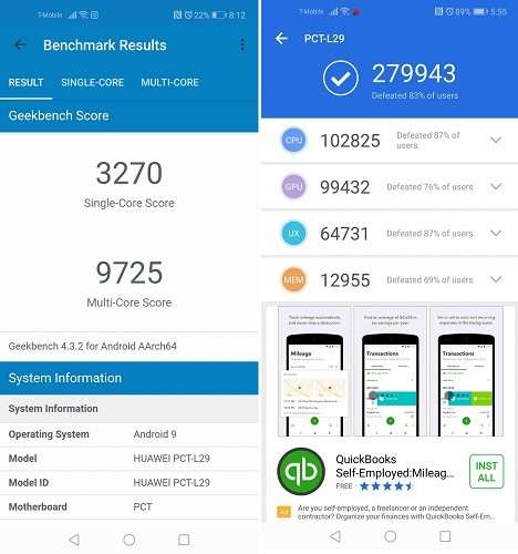 Как в синтетических тестах, так и в реальной жизни, View 20 демонстрирует отличные результаты. В Geekbench аппарат набирает 9725/3270 баллов, в AnTuTu – почти 280 тысяч. Он имеет очень быстрый и плавно работающий интерфейс, практически моментально запускает приложения и справляется с самыми ресурсоемкими задачами. Проблем с нагревом под нагрузкой нет благодаря наличию продуманной системы охлаждения в виде медной теплоотводящей трубки внутри корпуса, за пол часа игры в PUBG температура которого не превысила 37 градусов. С играми дела в целом обстоят хорошо. Просадок по частоте кадров, которые мешали бы играть, нет даже в самых тяжелых проектах, а игры с поддержкой GPU Turbo стабильно идут с 60 fps на самых высоких настройках. К числу последних относится PUBG и другие популярные тайтлы вроде Crossfire, Kings of Glory и NBA 2k18 и т.д.