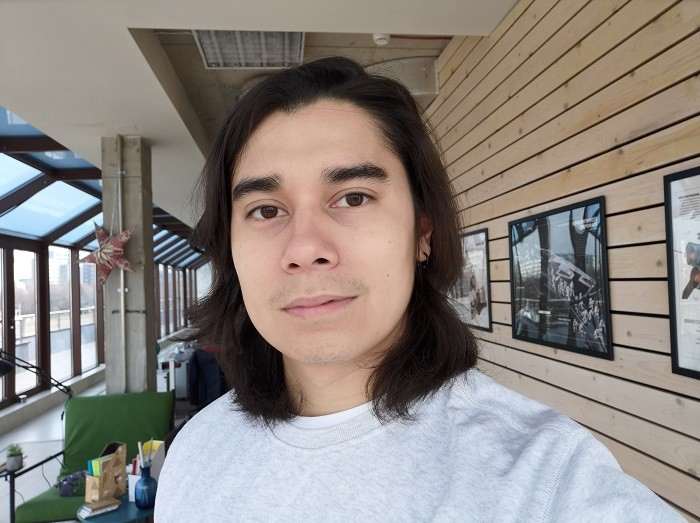 25 мегапиксельная фронтальная камера создает неплохие снимки с приятной цветопередачей, но программная обработка, из-за которой кожа выглядит излишне пластиковой, заметна даже при выключенном бьютификаторе. Селфи можно делать с размытым задним фоном, который отсекается не всегда корректно. Имеются режимы имитирующие разнообразные фильтры и условия освещения, а также аналог Anomoji от Apple.