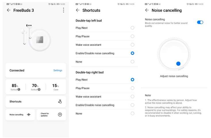 Есть важный нюанс – приложение работает только на Android. На iOS вы по-прежнему получаете базовый функционал с возможностью включить ANC двойным нажатием, но лишаетесь возможности изменить жесты. Если настроить FreeBuds 3 через AI Life на любом Android-смартфоне, предустановки перенесутся на наушники и сохранятся до сброса настроек сопряжения.
