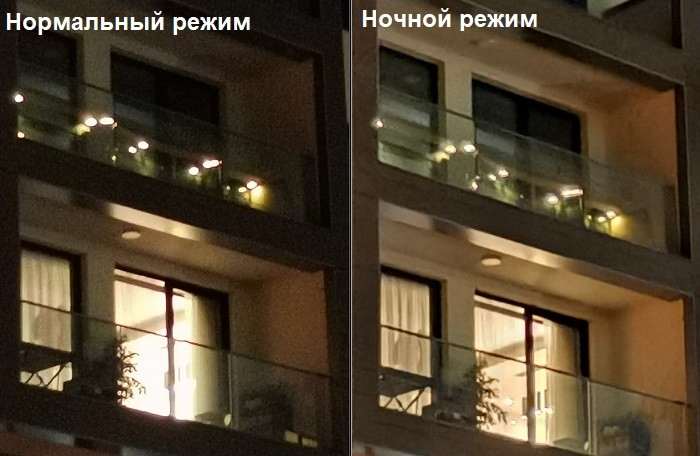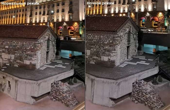 Телевик также сильно выигрывает при использовании ночного режима, он позволяет получить гораздо больше деталей и снизить уровень шума. Наличие OIS тут очень выручает.