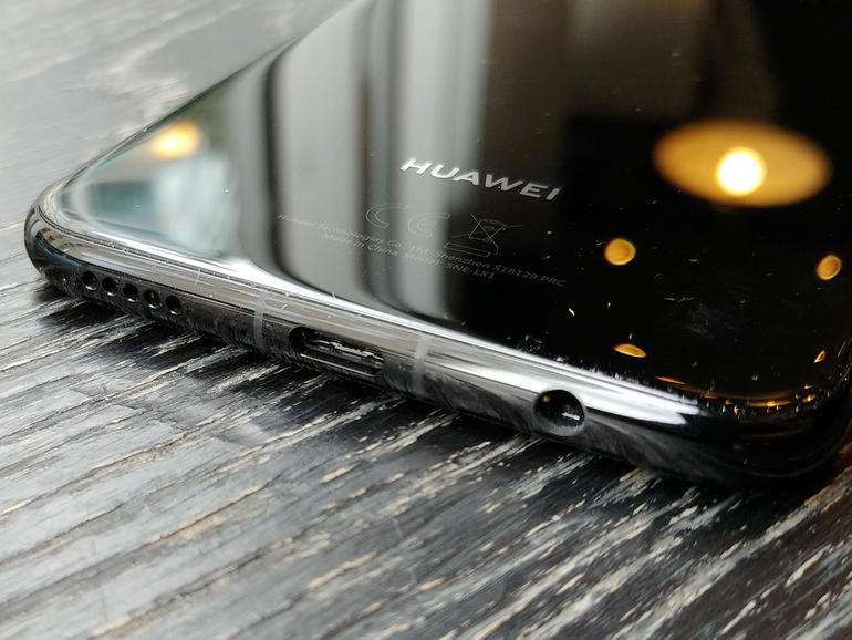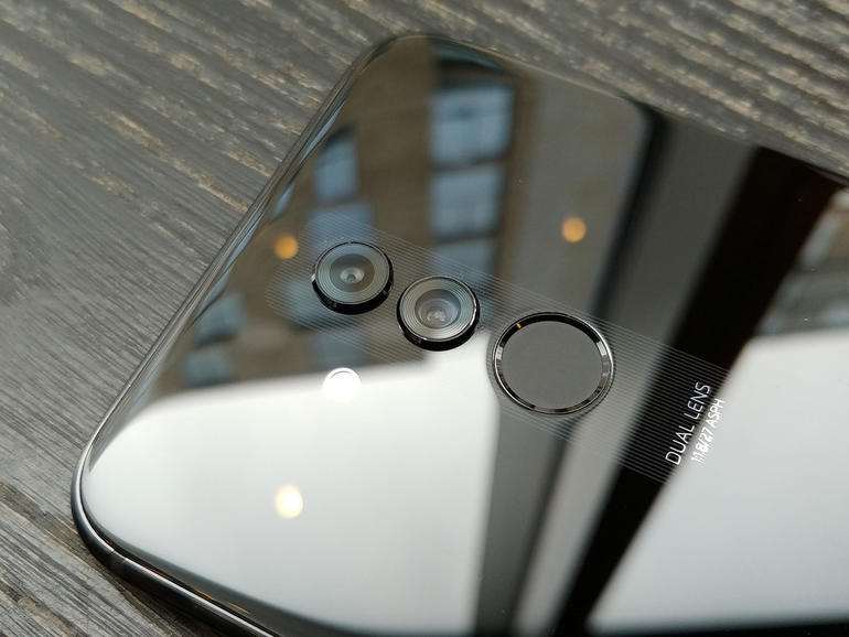 Два разделенных объектива основной камеры и сканер отпечатков пальцев расположены симметрично друг другу, слева от них находится светодиодная вспышка. Huawei не указывает, какое стекло используется в конструкции смартфона – Gorilla Glass или его более дешевый аналог. Покрытие быстро заляпывается отпечатками пальцев, как и в любом другом подобном устройстве. Влагозащита стандарта IP не заявлена.