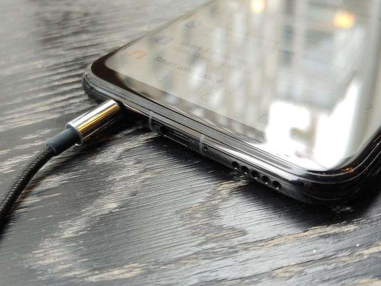 Внизу можно найти порт USB-C, разговорный микрофон, 3.5 мм разъем для наушников и решетку мультимедийного динамика.
