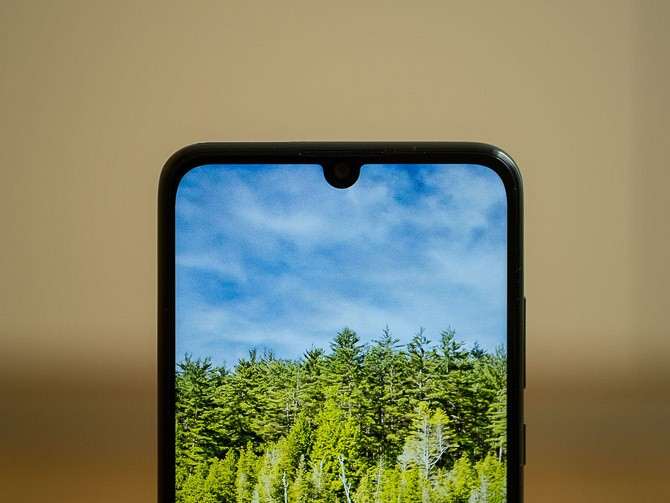 У P Smart (2019) не самые тонкие рамки, но выглядит аппарат элегантно, чему способствуют скругленные углы корпуса и отсутствие логотипа компании на подбородке. В миниатюрном выступе, помимо фронталки, расположены разговорный динамик и светодиодный индикатор событий.