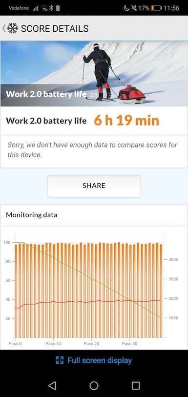 Смартфон оснащен несъемным литий-полимерным аккумулятором на 3000 мАч. Он не бьет рекордов по продолжительности автономной работы, большинство конкурентов с аналогичной либо меньшей емкость аккумулятора работают дольше. Тест PCMark оценивает автономность смартфона на 6 час. 19 минут, при непрерывном воспроизведении видео батарейка высаживается в ноль за 7 часов 30 минут, с максимальной нагрузкой в играх за 4 часа 7 минут.