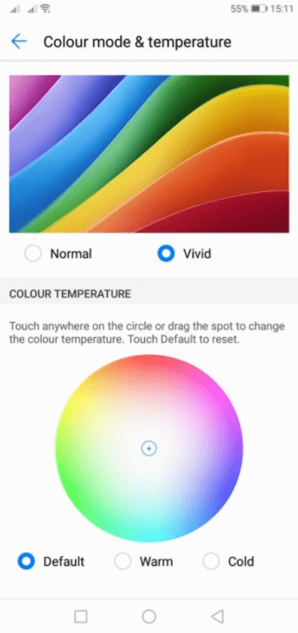 В P20 есть множество вариантов настройки экрана: можно включить режим естественной цветопередачи, в котором цветовая температура дисплея будет регулироваться под условия окружающей среды, переключаться между нормальными и насыщенными цветами, активировать режим защиты глаз, уменьшать разрешение для экономии заряда аккумулятора и многое другое.