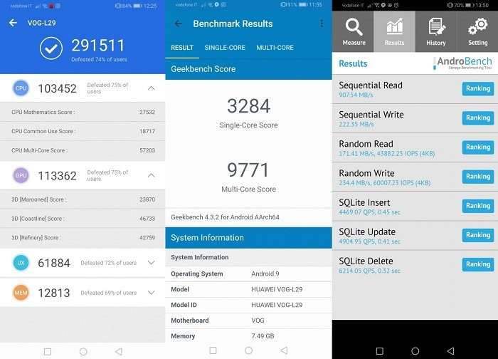 В синтетических тестах Kirin 980 уступает своим главным конкурентам в лице Snapdragon 855 и Exynos 9820, однако в реальной жизни разницу между ними заметить крайне сложно. P30 Pro очень быстро работает, радует плавностью интерфейса, быстрым запуском приложений и корректной работой с ними в режиме многозадачности. Микроподлагивания встречаются крайне редко. Нагрев корпуса при продолжительной нагрузке в пределах нормы, стабильные результаты при повторных прогонах теста AnTuTu и отсутствие просадок по частоте кадров в тяжелых играх свидетельствуют об эффективном отводе тепла от процессора. Флагман располагает игровым режимом GPU Turbo 2.0, который до сих пор поддерживает очень небольшое количество проектов (6 шт), но в их число входят горячо любимый мобильными геймерами PUBG, в который на максимальных настройках графики можно играть со стабильными 60 FPS.