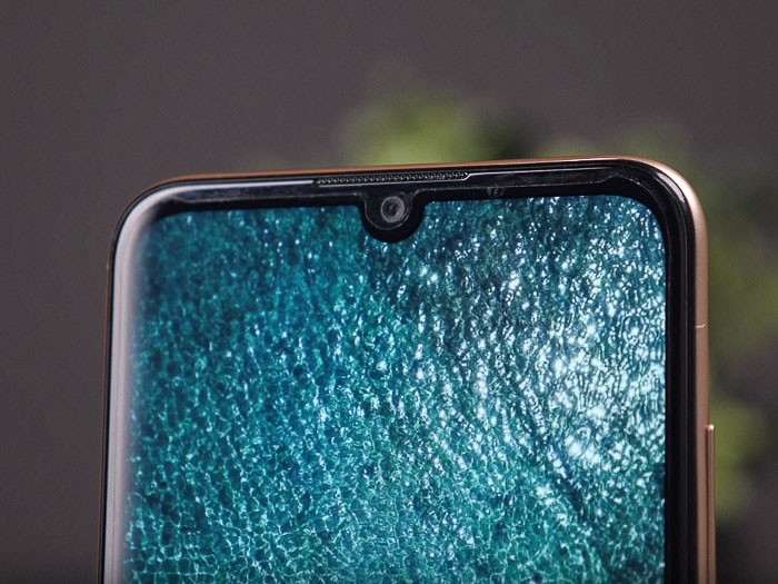 В вырезе над фронтальной камерой находится разговорный динамик и светодиодный индикатор уведомлений, а ближе к правому краю установлена незаметная в неактивном состоянии светодиодная вспышка.