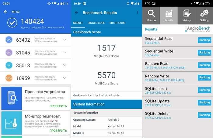 На звание игрового смартфона Ми А3 не претендует, но поиграть на нем можно в любые современные игры. В требовательных проектах вроде PUBG смартфон выдает около 30 кадров в секунду, танки идут с частотой 50-60 fps на высоких настройках графики. Смартфон практически не греется и не троттлит под нагрузкой, а потому фреймрейт остается стабильным на протяжении длительного времени — хоть где-то от HD экрана есть польза.