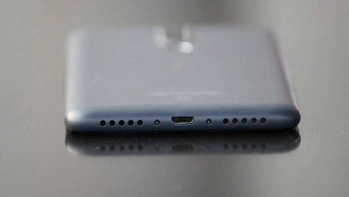 Сверху расположился 3.5 мм разъем для подключения наушников, а снизу – порт MicroUSB и две симметричные решетки динамика.