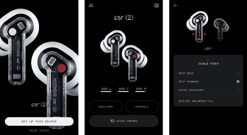 Nothing Ear (2) оснащены сенсорными датчиками, расположенными на ножках наушников, и управляются они щипками, как в AirPods Pro. В нашем распоряжении широкий спектр взаимодействий, и что важно, возможность редактировать их практически любым способом.