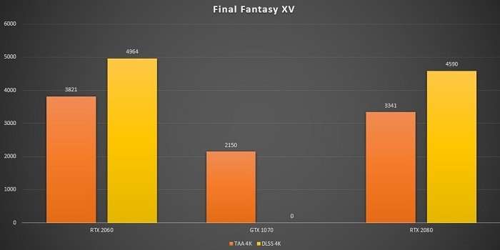 В бенчмарке Final Fantyasy XV можно проследить влияние технологи сглаживания DLSS на общий уровень производительности, преимущества которой над традиционным TAA-сглаживанием очевидны. DLSS не поддерживается 1070, для нее приводим только результат с применением TAA.
