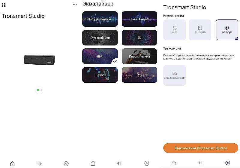 Studio поддерживает фирменное приложение Tronsmart, которое выполнено довольно коряво (оценка в Google Play – 2.3), но обеспечивает весь необходимый функционал: