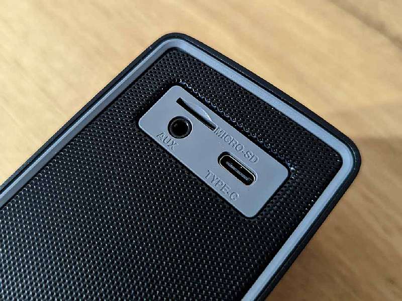 На задней панели есть порт Type-C для зарядки, линейный разъем 3,5 мм (оба кабеля входят в комплект) и слот для micro SD, если вы предпочитаете слушать музыку с флешки.