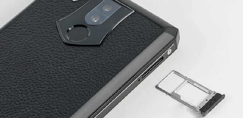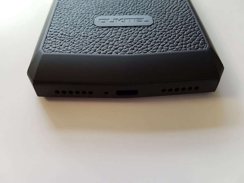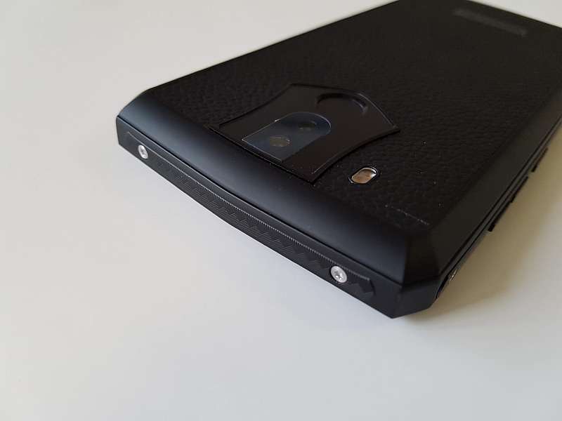 Задняя крышка покрыта декоративным материалом под кожу. Как утверждает производитель, это натуральная кожа австралийского теленка, но у нас есть сомнения по этому поводу – владельцы K10000 Pro от Oukitel свидетельствуют, что на их смартфоне под видом натуральной кожи используется синтетическая имитация на тряпичной подложке.