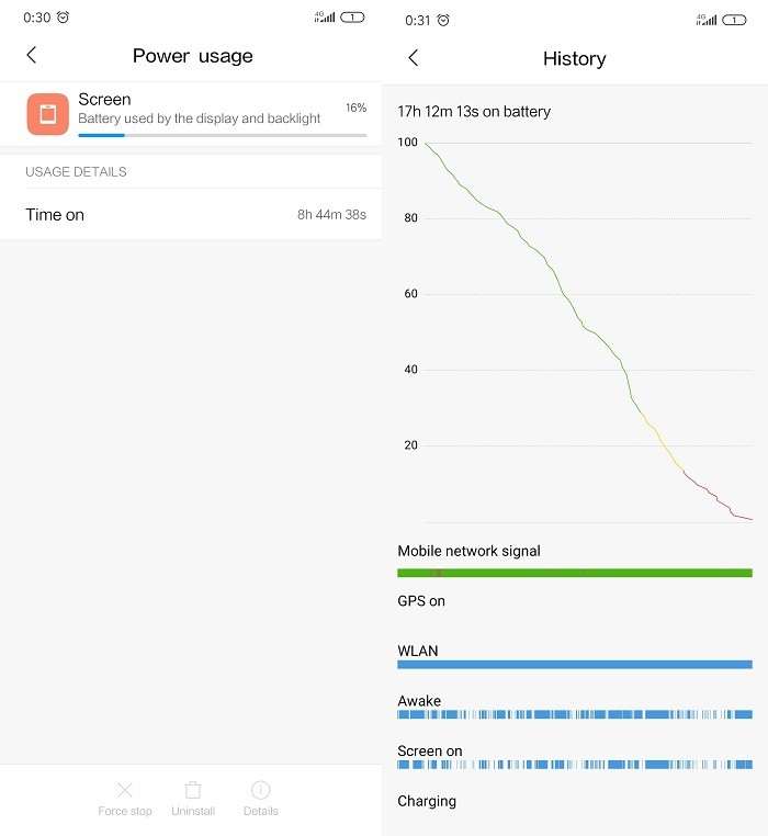 Без игр, с постоянно включенным LTE, прослушиванием музыки через Bluetooth наушники в течении 3-4 часов, использованием камеры, мессенджеров и браузером выходит в среднем 8 часов работы экрана. Показатель неплохой, но в играх Helio G90T кушает очень много – за 3 часа непрерывной катки в PUBG на максимальной яркости с 4G подключением батарейка опускается с 100 до 22%.