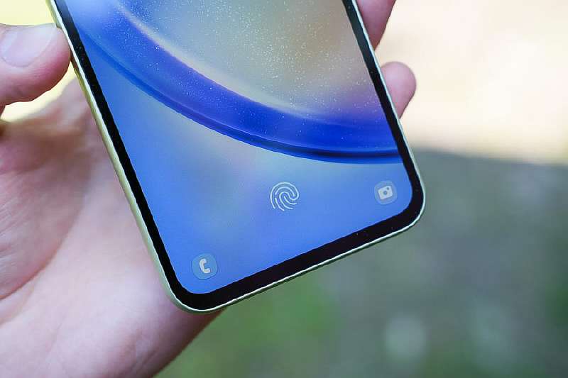 Под дисплеем A34 находится оптический сканер отпечатков. Он не самый быстрый (палец нужно неподвижно удерживать около секунды), но выполняет свою работу стабильно. Единственный момент, ридер, на мой вкус, низковат, если бы он был на пару сантиметров выше, то пользоваться было бы удобнее.