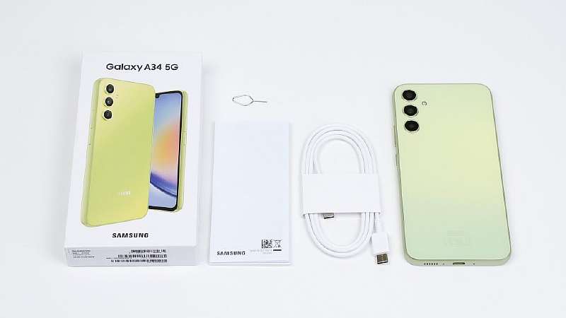 Samsung поставляет А34 в новомодной эко-упаковке без зарядного устройства. Внутри вы найдете руководство пользователя, металлический инструмент для извлечения SIM-карты, и кабель USB-C на USB-C (для зарядки и передачи данных).