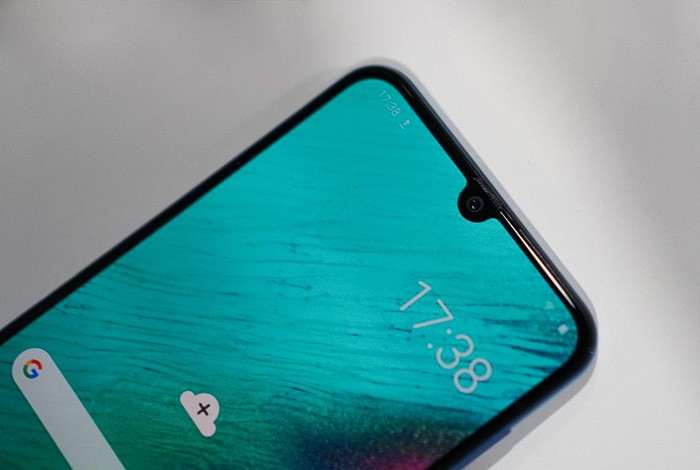 Galaxy A50 оснащен 6.4 дюймовым SuperAMOLED дисплеем с FullHD+ разрешением и соотношением сторон 19.5:9. Это экран типа Ininity-U с каплевидным вырезом под фронтальную камеру, закругленными углами и тонкими рамками, который занимает 91.6% площади лицевой панели — для устройства из среднего ценового сегмента это отличный показатель. Дисплей покрыт закаленным стеклом Gorilla Glass 3 с неплохим олеофобным покрытием.